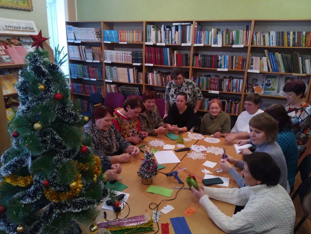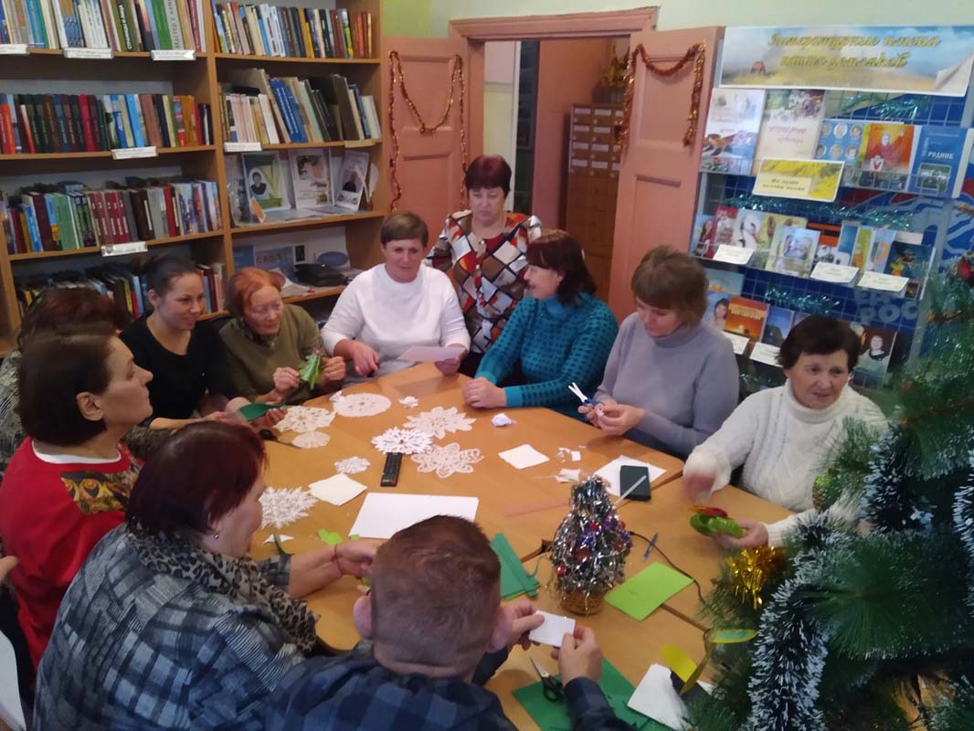 Сегодня в Глушковской межпоселенческой библиотеке продолжила свою работу «Мастерская Деда Мороза». Работник культуры, ОБУСО «КЦСОН Глушковского района» совместно со слушателями Университета пожилого человека погрузились в сказку Нового года, создавая нарядные снежинки из пушистой пряжи и разноцветной бумаги. А креативные ёлочки на подставках, новогодние игрушки из фоамирана - удивительный подарок для любимых родных и друзей.