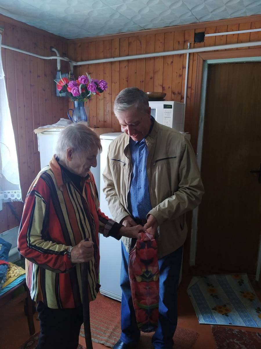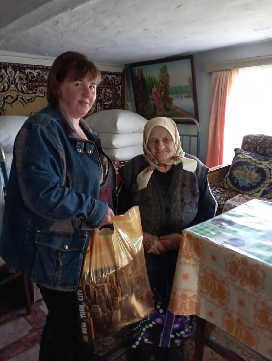Специалисты ОБУСО «КЦСОН Глушковского района» поздравили тружеников тыла, вдов ветеранов Великой Отечественной войны и вручили продуктовые наборы.